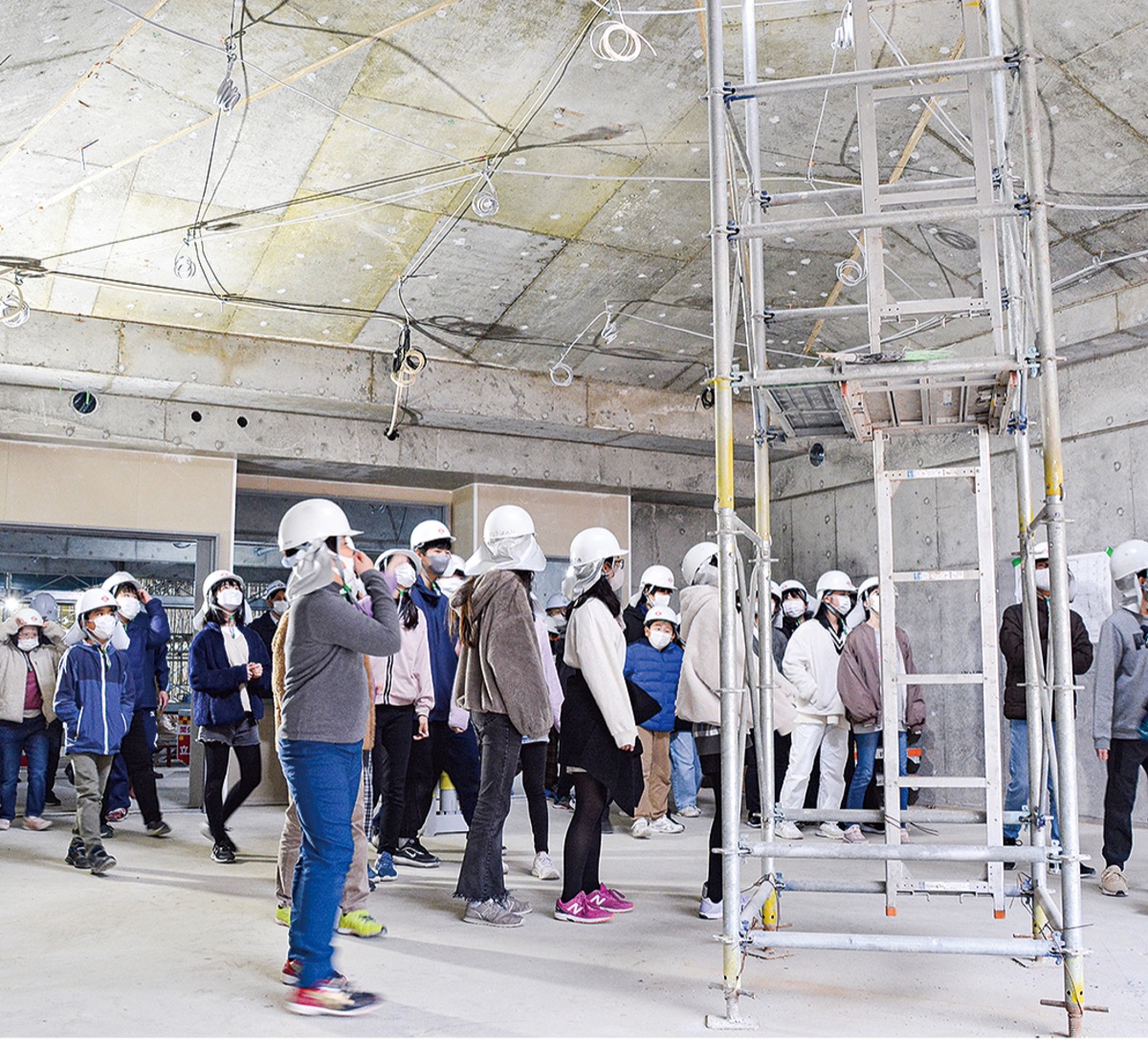 新校舎の建設が進む磯子区の汐見台小学校(犬塚真校長)で2月14日、横浜市建築局が出前授業を実施。6年生の児童約120人が、建設中の工事現場を見学した。