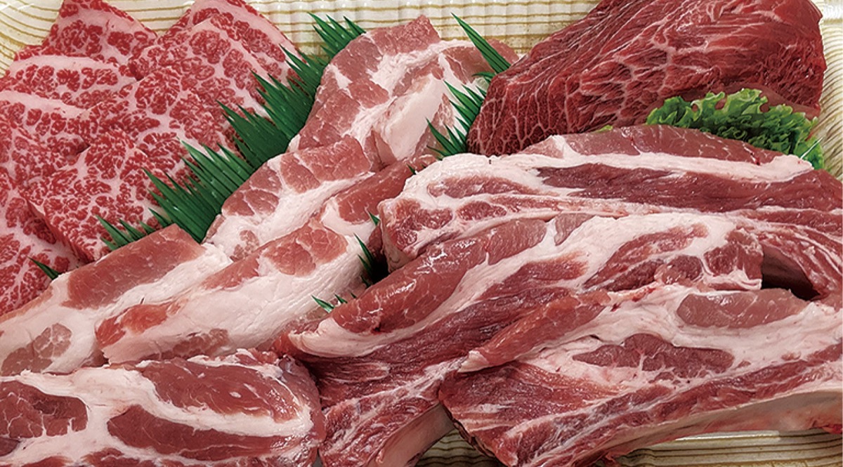 「肉の大成」では牛ブロック肉やスペアリブなど、厳選された肉を豊富に品揃え。前日までの連絡でバーベキュー用の肉を各種用意してくれる。毎月恒例「肉の日」の29日(土)は対面販売の商品が3割引に。