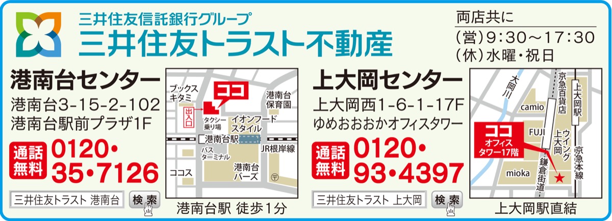 こんなご時世だからこそ、お金や資産のことはしっかり準備し考えておきたいもの。そのような人におすすめしたいのが、三井住友信託銀行グループ「三井住友トラスト不動産」の港南台センター(港南台駅徒歩1分)と上大岡センター(上大岡駅直結)が開催する税務の無料・個別相談会だ。5月27日(土)、税理士による相談会を両センターで同時に実施。