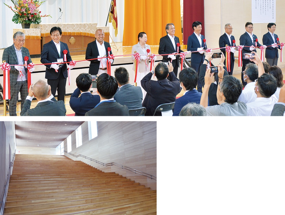 体育館で開かれた落成記念式典には、市教育委員会の鯉渕信也教育長や関森雅之磯子区長らの来賓、保護者、地域住民、教職員など約260人が出席。地域を代表して挨拶に立った同校運営協議会の岡道子会長は、関係者への感謝を伝えながら「汐見台小学校の新しい歴史が始まります」とあいさつ。その後、テープカットが行われ、新校舎の落成を祝った。