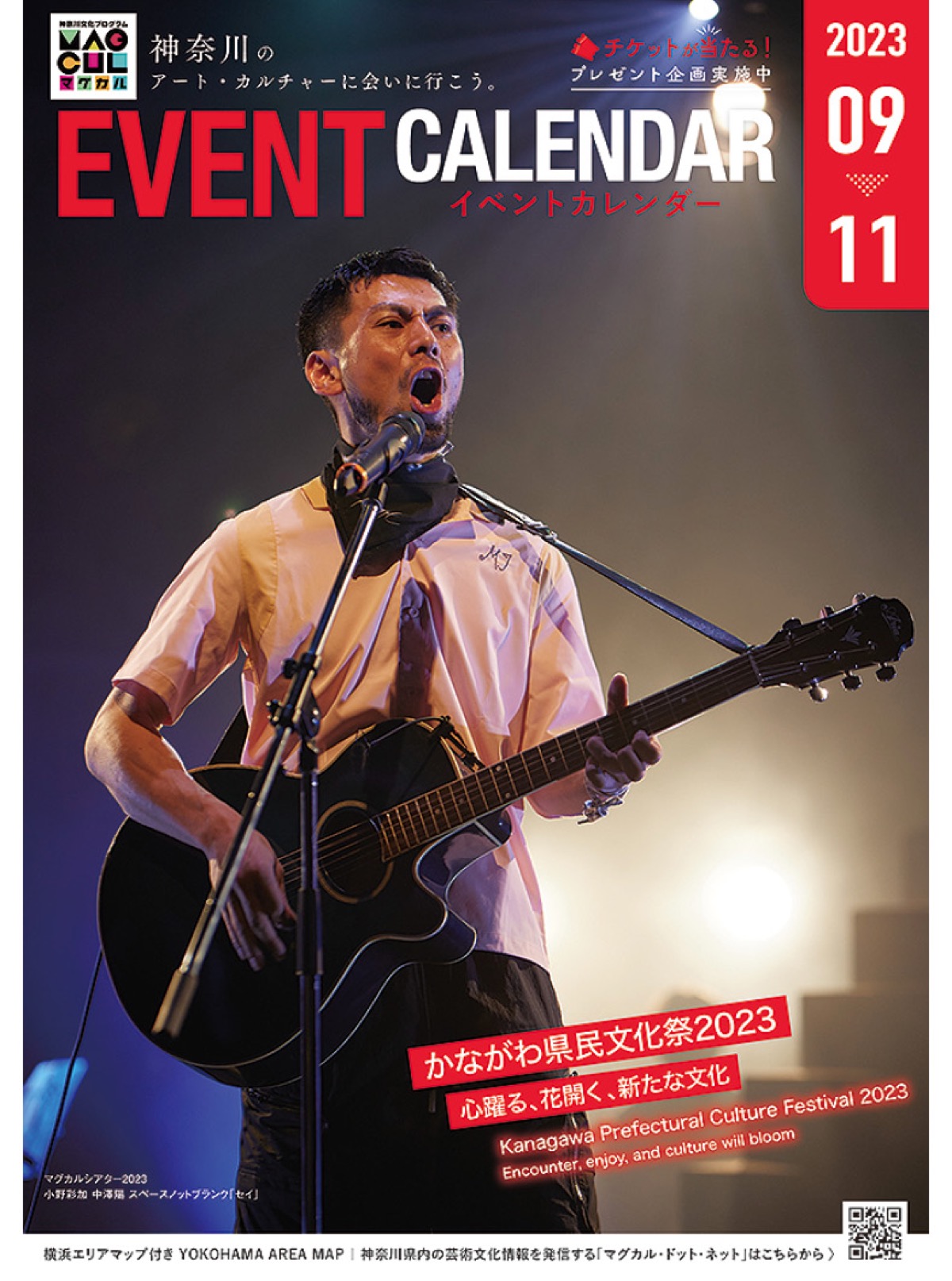 文化芸術の魅力で人を引きつけ、地域のにぎわいをつくり出すマグネット・カルチャー(マグカル)の取組みを推進している県が発行する冊子で、毎号、県内文化施設の公演や展示情報などがカレンダー形式で紹介されている。今号では、9月から県内各地で行われる「かながわ県民文化祭2023」を特集。県、各市町村で開催される主なプログラムを紹介している。また、アンケートに答えてチケットやカレンダーが当たるプレゼント企画も実施している。