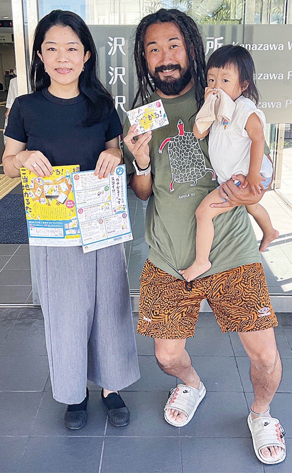 ご当地かるた「カナかる」の企画・運営チームが9月19日、金沢区内の22の放課後キッズクラブと県立金沢支援学校「はまっ子ふれあいスクール」にかるたを寄贈した。19日に開かれたキッズクラブの連絡会で、同チームの山崎真実さんと二見翼さんがカナかるについて説明、各クラブに手渡した。山崎さんは、「昨年9月にクラウドファンディングをしていた頃から子どもたちに寄贈したいという思いがあった。かるたが活用、普及されることを願っている」などと話した。