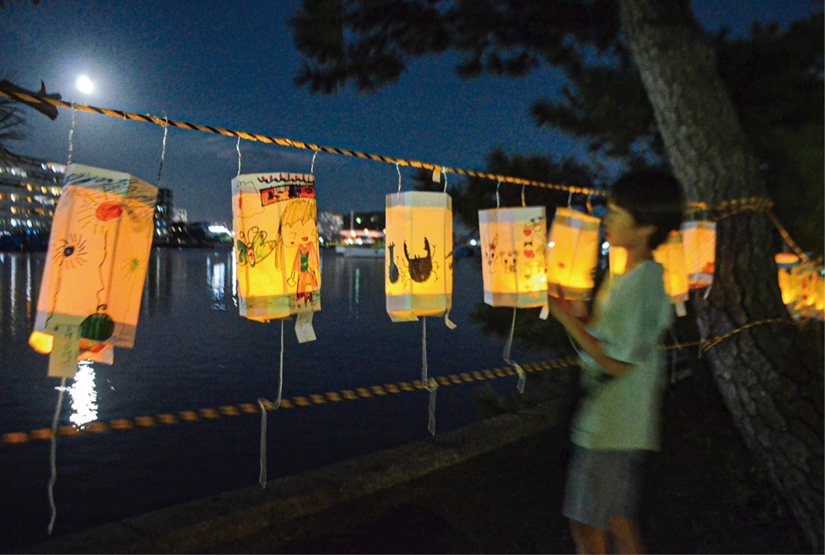 琵琶島神社=金沢区瀬戸=で9月30日、瀬戸秋月祭が開催された。毎年「中秋の名月」の週末に開催。今年は区内の小学校、保育園など計11団体の子どもたちが作った行灯480個が飾られた。当日は約970人が来場した。