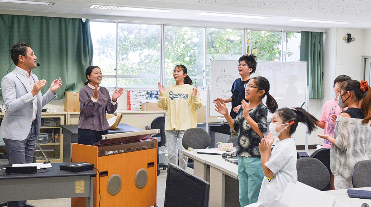 この取り組みは、全国各地で行われている公益財団法人かけはし芸術文化振興財団が主催する出前授業の一つ。作曲家で音楽教育家のMASAKingさんが講師となり、ICT(情報通信技術)を活用しながら音楽に取り組む。