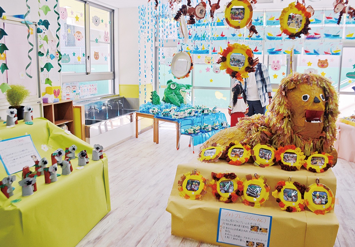 金沢大道幼稚園(吉田道子園長)=金沢区町屋町=で10月6日、園児が4月からつくってきた作品を展示する「園まつり」が開催された。当日はクラスごとに、動物園や森などをテーマにした作品を展示。園のホールでは魚釣りゲームなども行われ、園児や保護者らで賑わった。