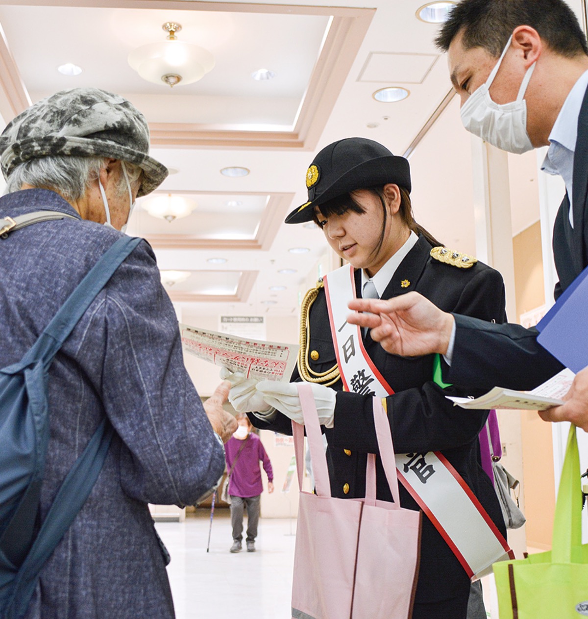 金沢警察署(岩渕浩二署長)は10月16日、安全・安心まちづくり旬間にあわせた防犯キャンペーンをイオン金沢八景ショッピングセンターで実施した。