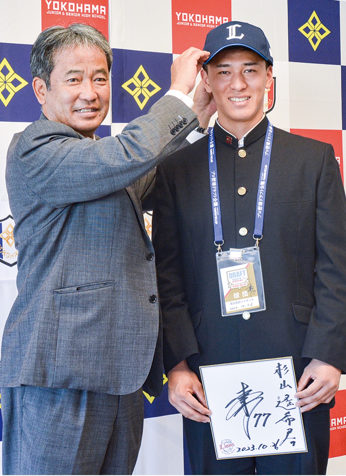 杉山さんは、左腕投手として1年時から公式戦で活躍し、2021年、22年は夏の甲子園に2年連続で出場。今夏もエースとしてチームをけん引した。同校を訪れた西武の球団本部編成グループディレクターの潮崎哲也氏は「秀でたものがあるから、横浜高校で1年生から投げられた。今年に入って力強さも出てきて、十分プロでもできると判断した」と評価する。