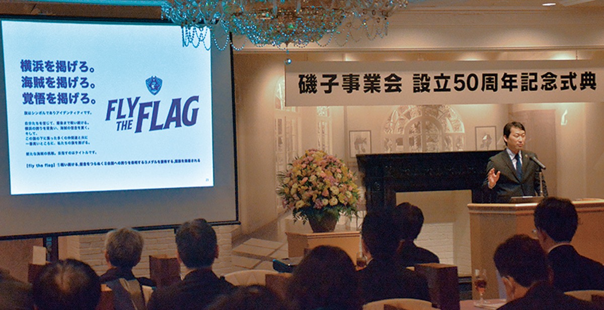 磯子区内の企業などが所属する磯子事業会(長谷川浩正会長)が11月15日、設立50周年記念式典を開催した。会員や関係団体などから62人が、ホテルロイヤルホールヨコハマ=中区=に集まり、講演会や懇親会を実施。これまでの歩みを振り返りながら、半世紀の節目を祝った。
