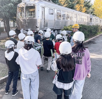 冒頭で同社の渡邉敦総務部部長が「日本の大手鉄道車両メーカーは5つあるが、関東にあるのは当社のみ。従業員が心を込めてつくっているので、ぜひ鉄道車両を好きになってもらえれば」とあいさつ。その後、児童は軍需工場跡地に建てられた広大な敷地にある工場の一部を見学して回った。