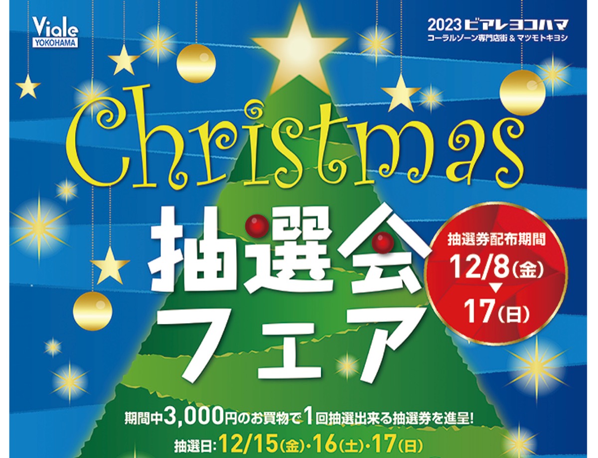 金沢区並木のビアレヨコハマコーラル専門店は、12月8日(金)から17日(日)まで、クリスマス抽選会フェアを開催する。期間中は、3千円のお買い物で1回抽選ができる抽選券を進呈。抽選日は15日(金)から17日(日)まで。9日(土)はFMヨコハマの藤田優一さんによる生レポートと景品が当たるじゃんけん大会、10日(日)は、横浜中学高等学校の和太鼓「鼓魂(こだま)」による勇壮で迫力ある演奏会が行われる。