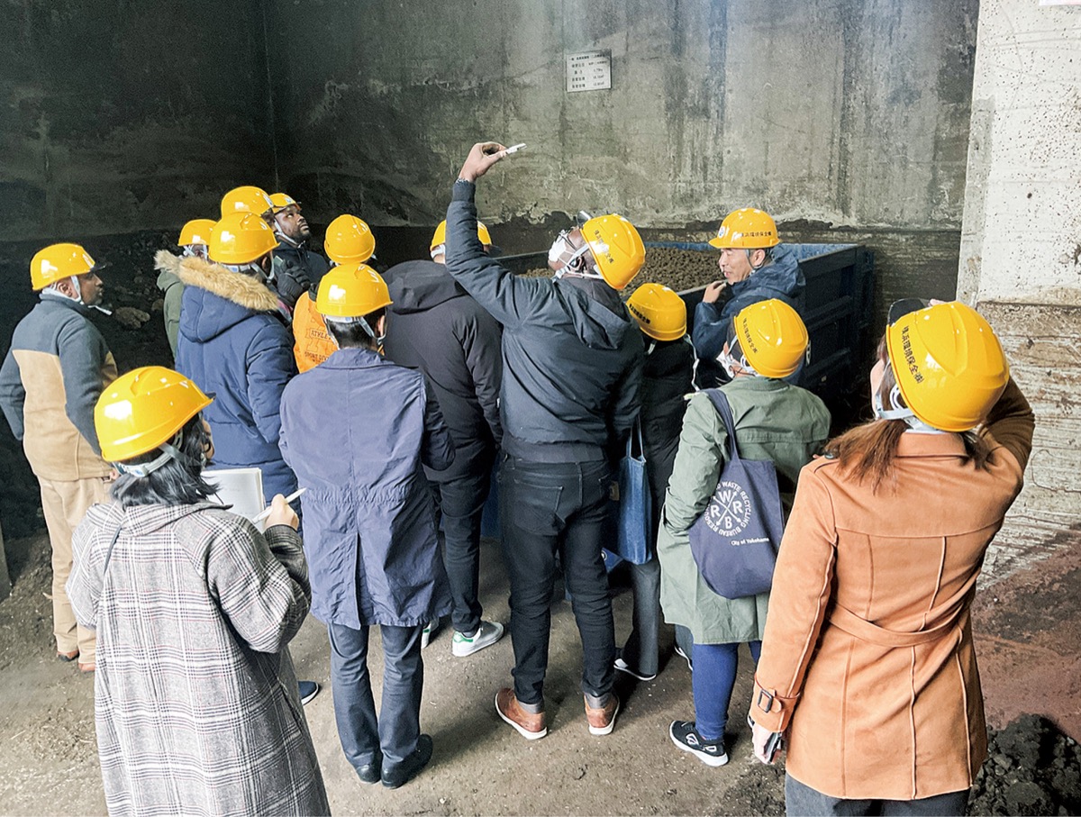横浜市は環境省、JICAとともに2017年にアフリカの廃棄物問題の解決に向けた「アフリカのきれいな街プラットフォーム」を設立。アフリカ諸国の環境問題解決に向け、年に2回研修を行っている。今回はアルジェリアやジブチなどフランス語圏などから10人が参加し、同事業所で生ごみを一次発酵、二次発酵させ、たい肥になるまでの過程を見学した。
