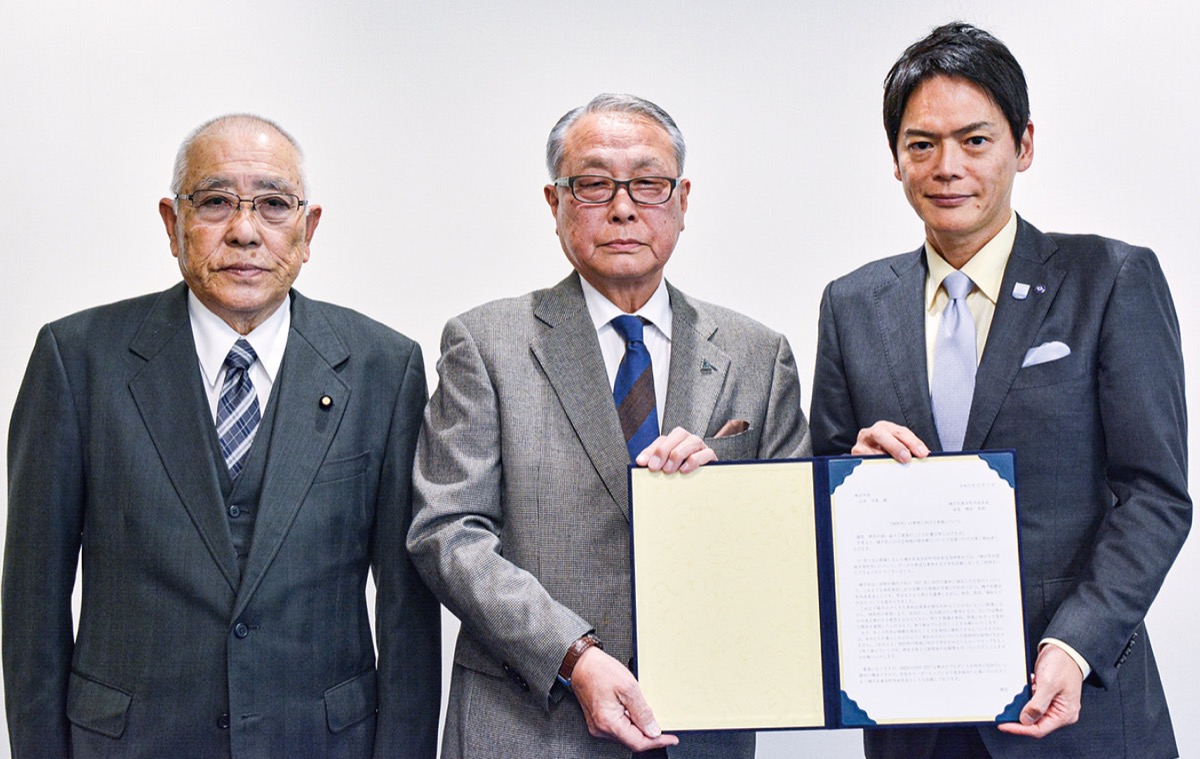 提出のために横田会長と、須田幸雄副会長が市庁舎を訪問。山中市長と面会し、横田会長が要望書を手渡した。横田会長は「自分たちの暮らしがどのように変わるのかについて、具体的な説明が欠かせない。今後も分かりやすく、説明を続けていただきたい」と要望。山中市長は「法制化を目指すには市民の皆さんの理解が不可欠。意義や制度の理解につながるような説明・広報に努力していく」と答えた。