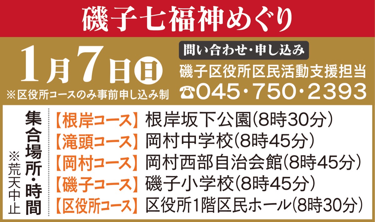 磯子区七福神をめぐろう7日、5コースで実施