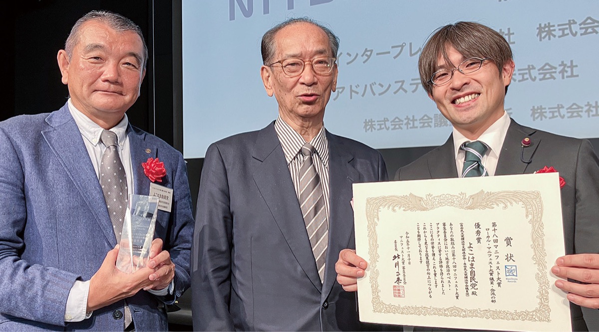 昨年11月、よこはま自民党は『マニフェスト大賞』で全国から3000件を超える優れた政策の中から、マニフェスト・議会部門最優秀賞を史上初めて2年連続で受賞しました。政務調査会長として政策発信の責任者を務めた2年間で2回連続の受賞となり、よこはま自民党が全国的にも最も優れた政策集団であることの証でもあります。