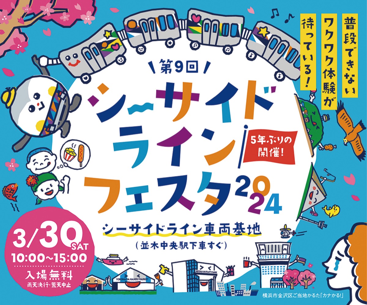 「シーサイドラインフェスタ2024」が3月30日(土)、シーサイドライン車両基地(並木中央駅下車すぐ)で開催される。午前10時から午後3時。入場無料。雨天決行。荒天中止。