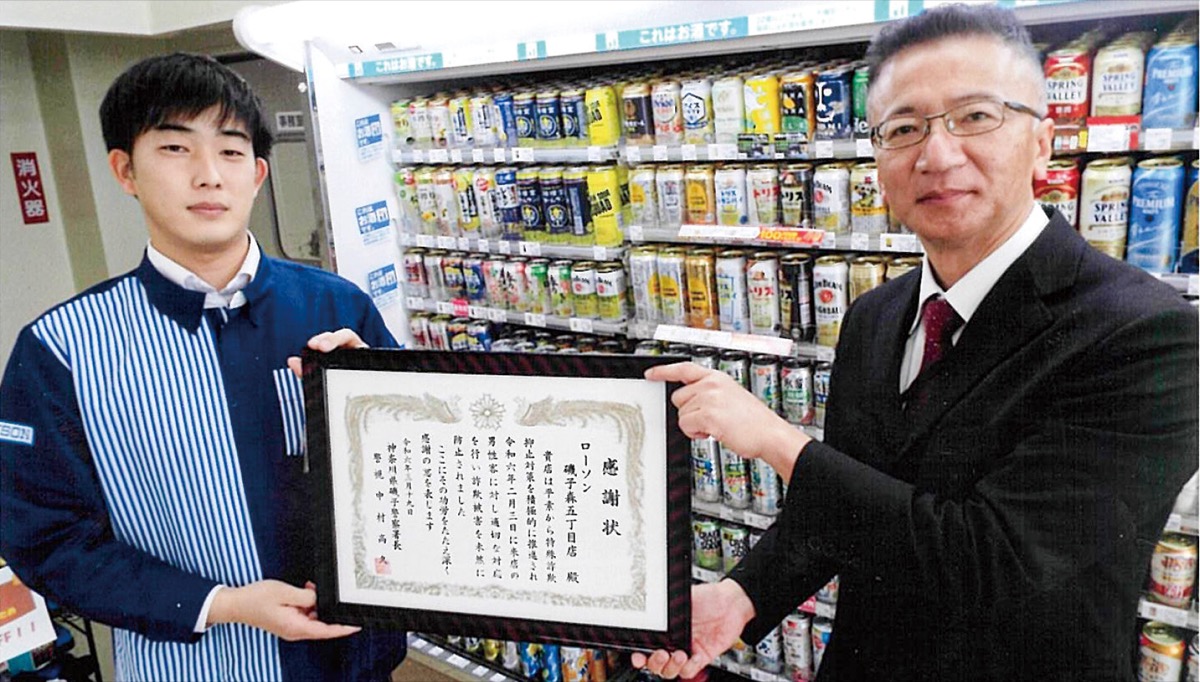 磯子警察署(中村高久署長)は3月19日、特殊詐欺の被害を防いだコンビニエンスストア「ローソン磯子森五丁目店」に感謝状を贈った。