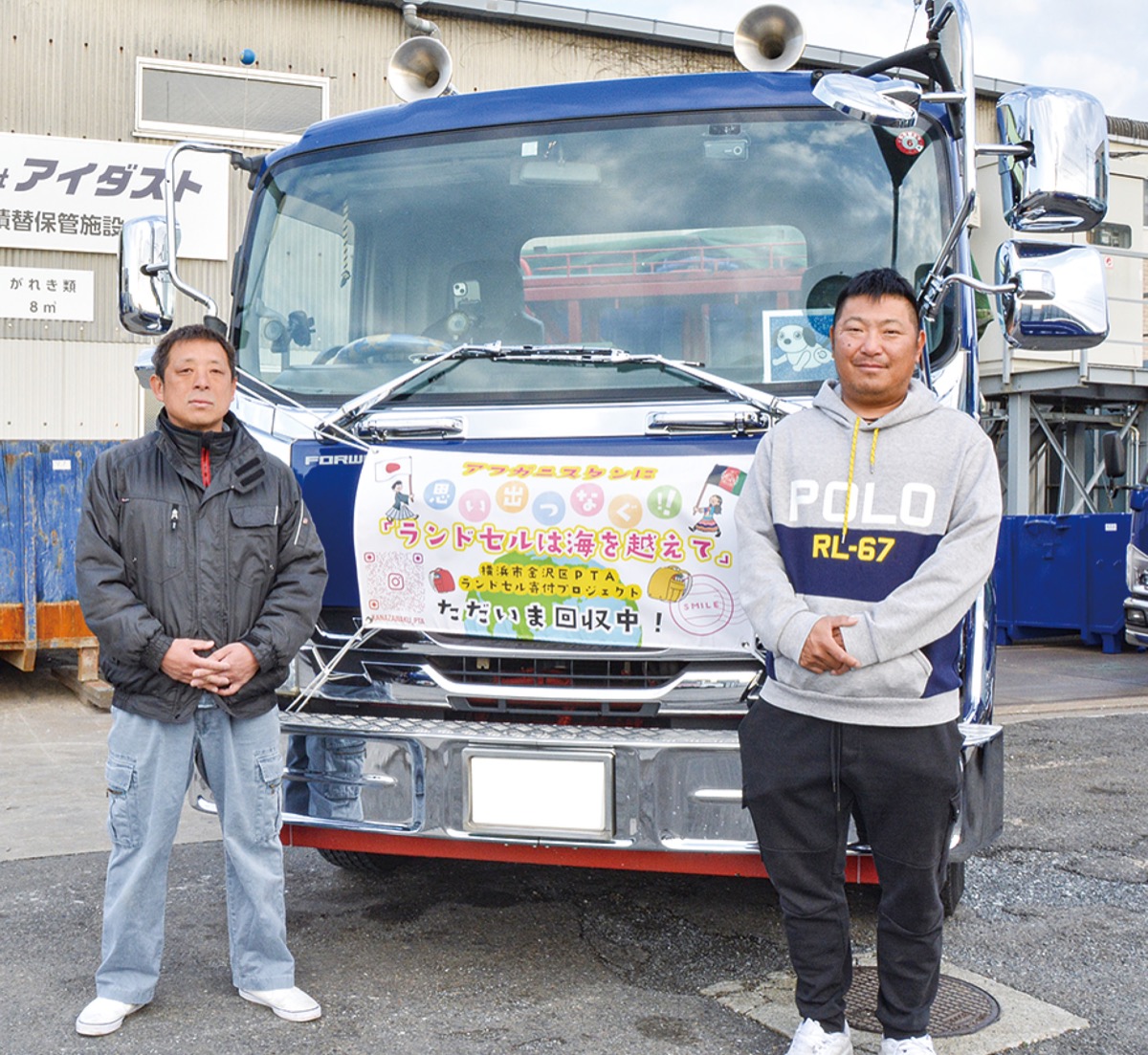 協力する各校の意向をもとに、油原会長らが3月28日と4月1日の2日間で各校を巡ってランドセルを回収。翌2日には、区内福浦に本社を構える(株)アイダスト(杉山哲平社長)の協力を受け、同社のトラックで埼玉県にある寄付団体の倉庫まで配送した。