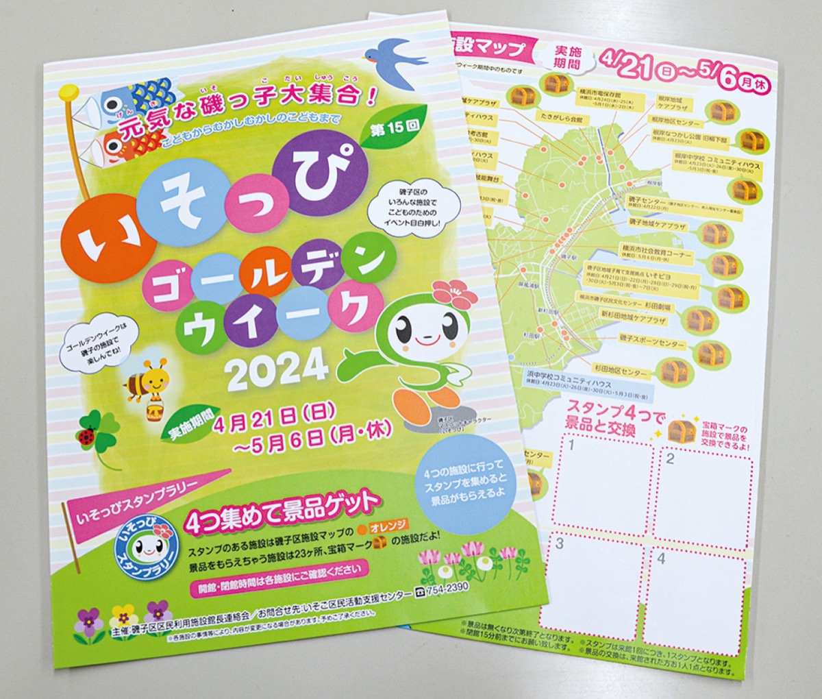 以下は当日参加できるイベント。杉田地区センター「キャンディーネックレスを作ろう!」5月3日(金)午前11時〜午後2時、磯子区青少年の地域活動拠点・イソカツ「イソカツミニ縁日」同日午後2時〜4時、滝頭地域ケアプラザ「プラレールdeあそぼう!」午前10時〜午後2時半、磯子図書館「本の木をおはなでいっぱいにしよう!」5月12日(日)まで開館時間内など。問い合わせはいそご区民活動支援センター【電話】045・754・2390。