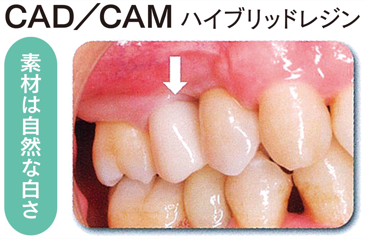2014年までは、健康保険が適用される奥歯(前から4番目以降)のかぶせ物は全て銀歯だったが、現在は4、5番目の歯はCAD/CAMハイブリッドレジンが主流になりつつあるという。
