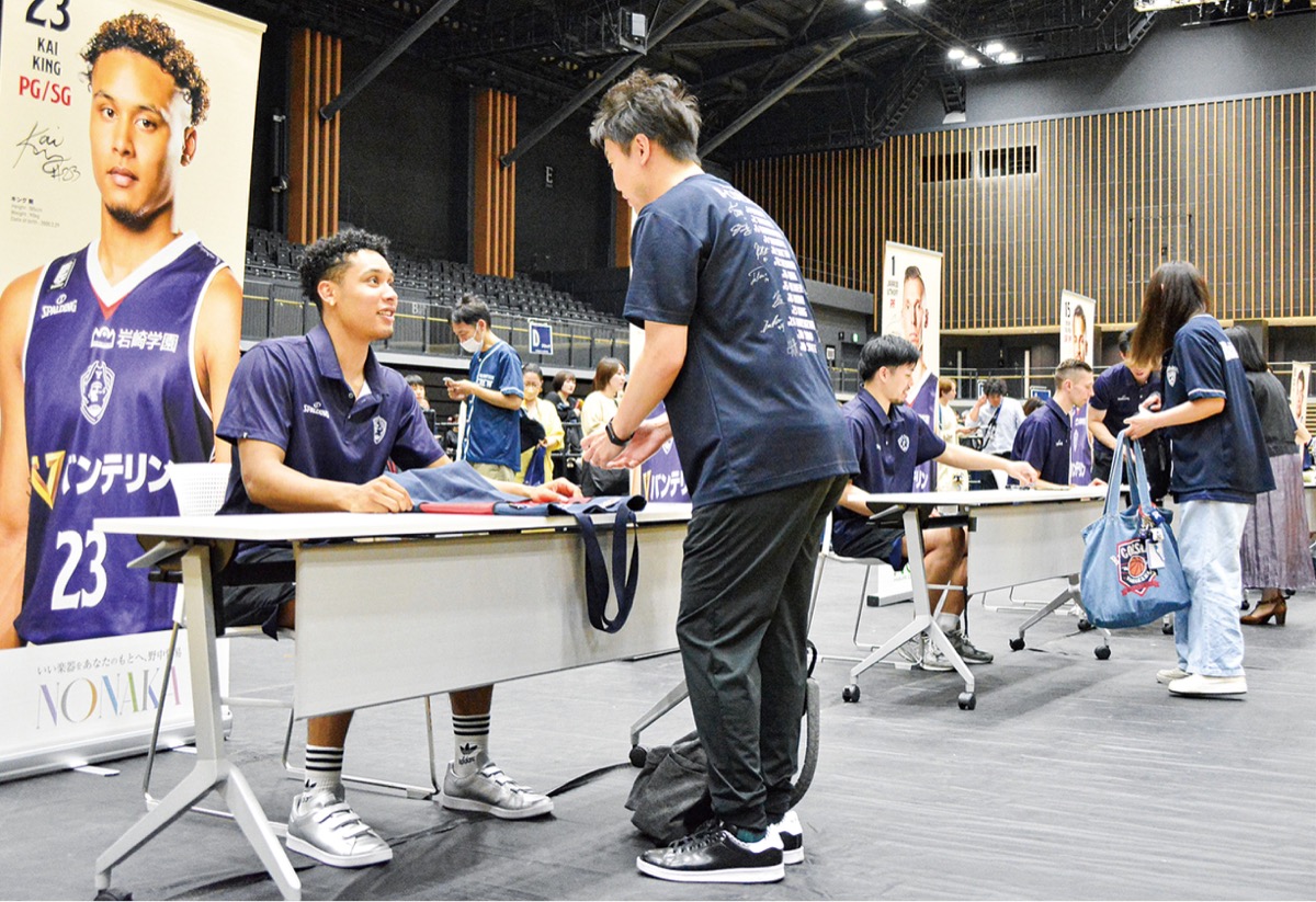 父や妹と一緒に参加した小池隼人君(8)は、「速攻の時のレイアップシュートが好き」というキング開選手との交流に笑顔。須藤昂矢選手にサインをもらった安藤結都君(9)は「写真も撮れて楽しかった。背が大きかった」と話した。