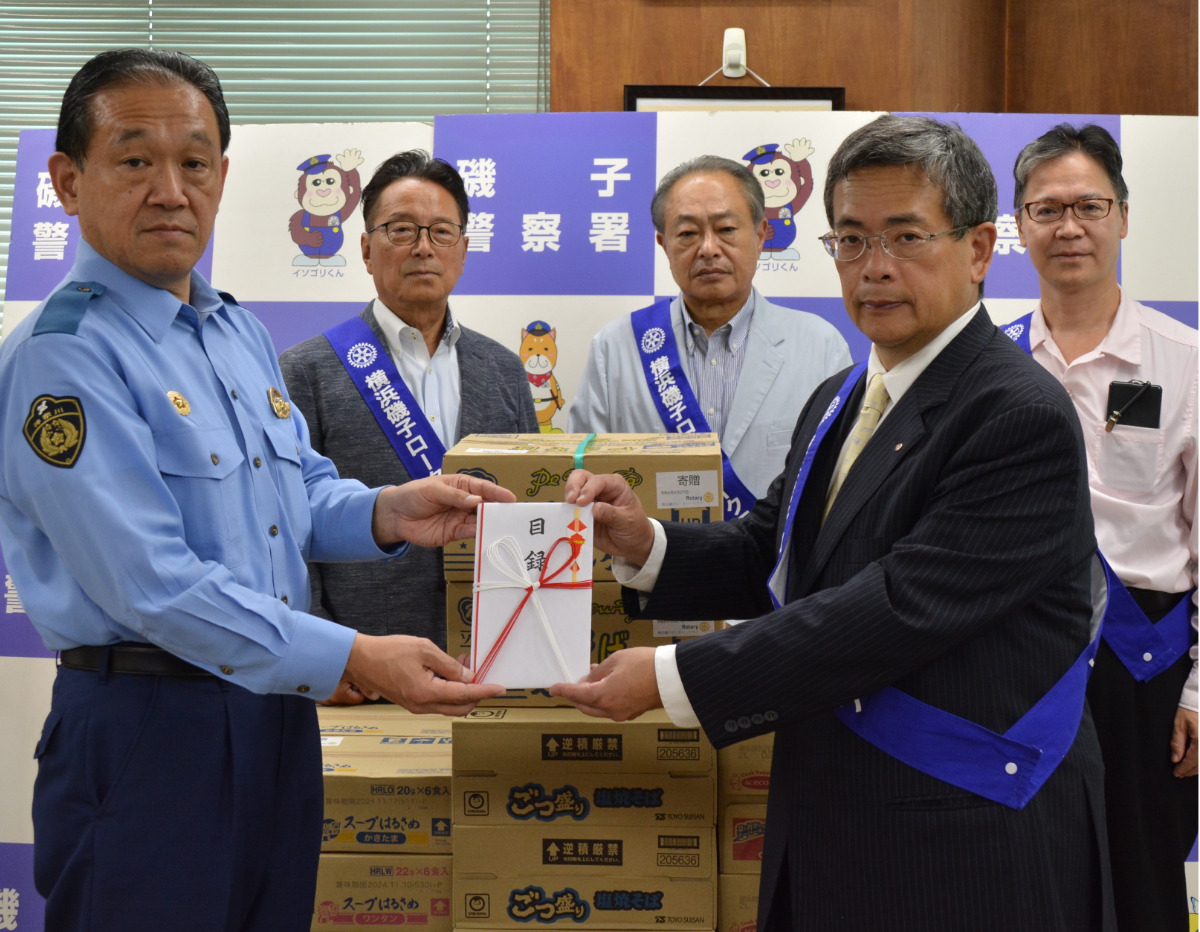 横浜磯子ロータリークラブ(川原武人会長)は6月27日、磯子警察署(中村高久署長)に対して寄付を行った。