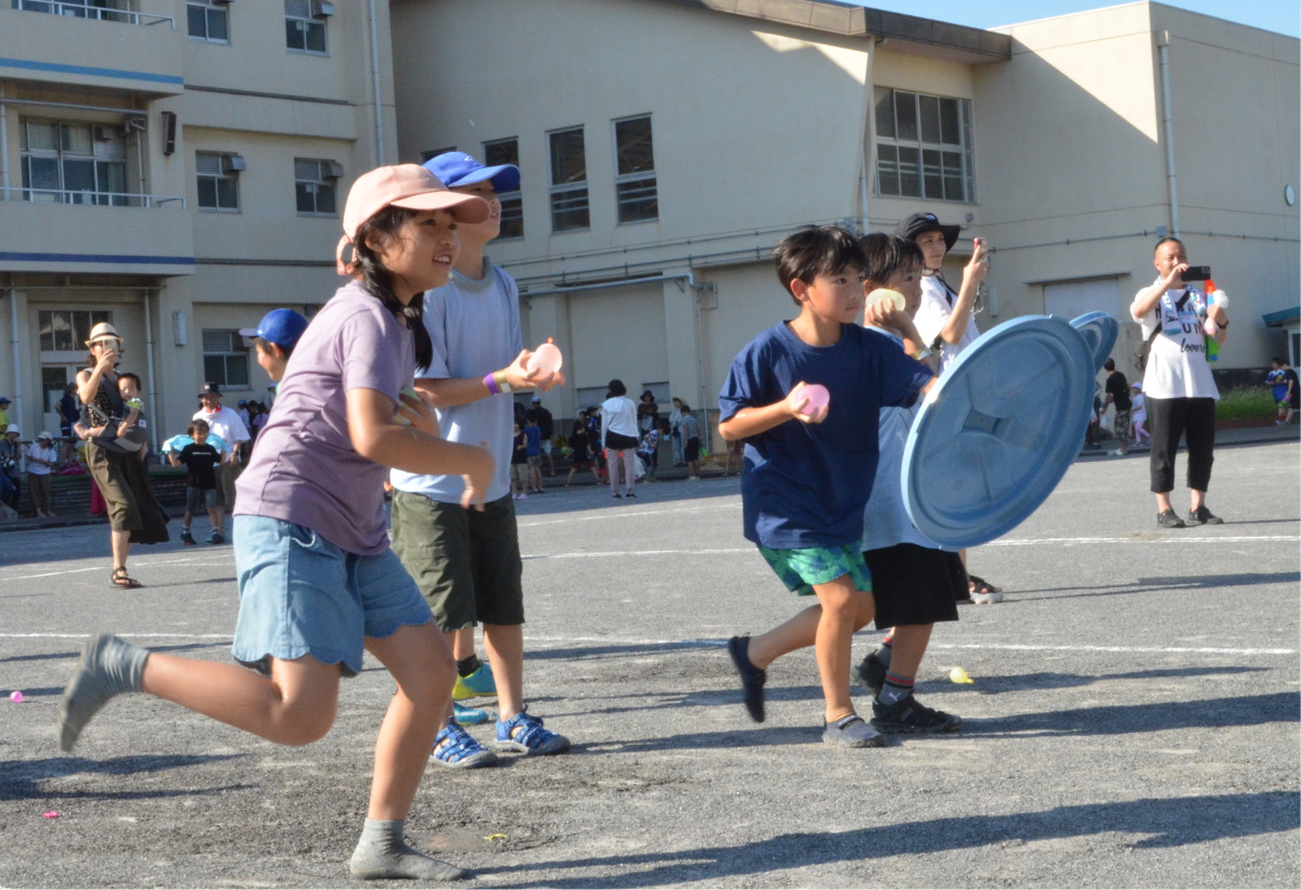 参加した浜小学校の児童(2年)は「水風船を当てるのが楽しかった」と笑顔を見せた。