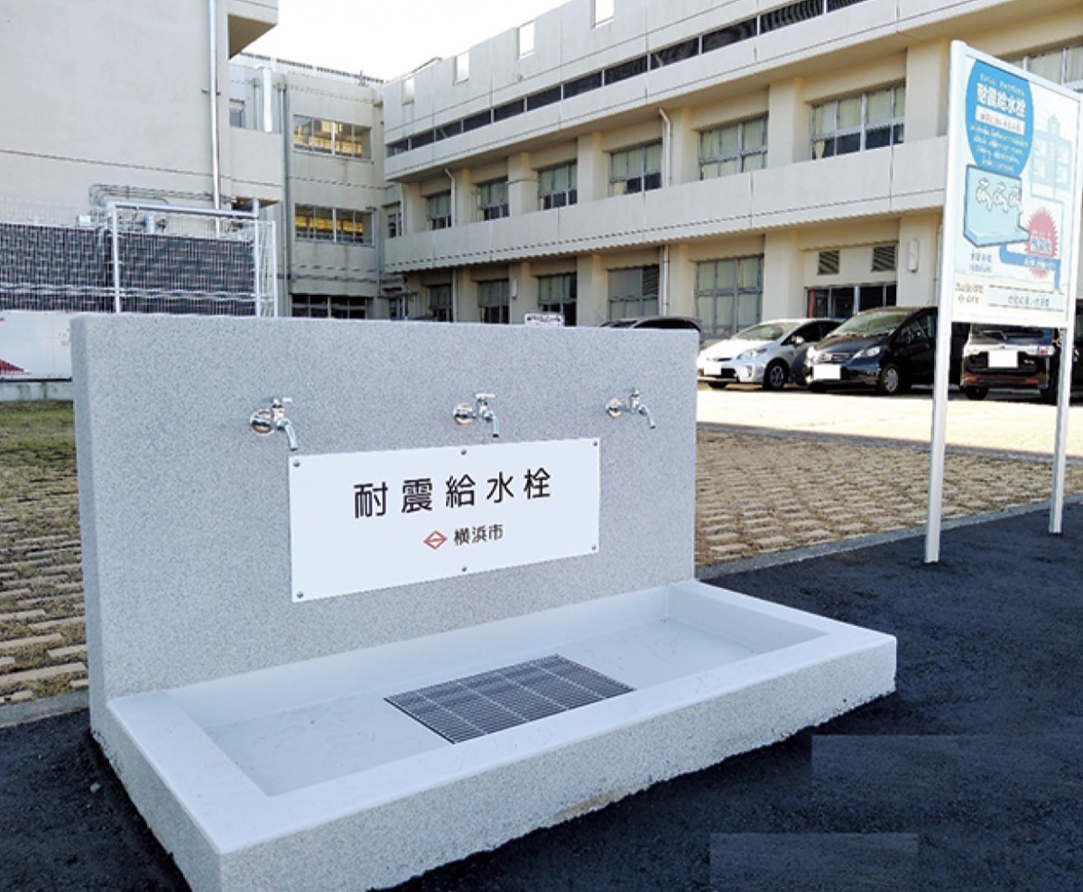 横浜市は市内各地の地域防災拠点などに、災害時給水所を整備して断水に備えた応急給水体制づくりを進めている。今年度は新たに5カ所で耐震給水栓を整備。市水道局では各家庭での飲料水や容器の備蓄とともに、近隣の災害時給水所の確認を呼び掛けている。