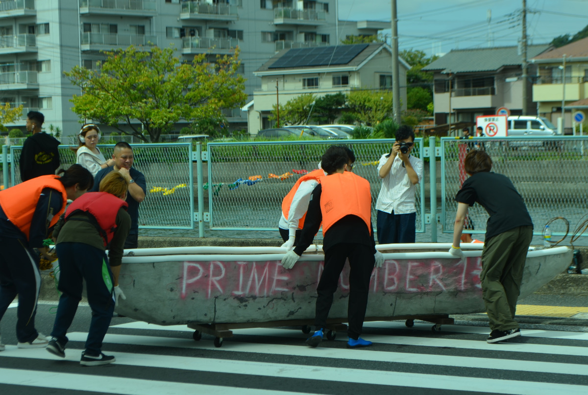 ほとんどのカヌーが3人乗りの中、唯一9人乗りだったのが「PRIME NUMBER1」号。水が入って沈没しないように願って、割れない「素数」を名前に入れた。このカヌーに乗った学生は「舵を取るのが難しかった。水が冷たい」と笑顔で話した。
