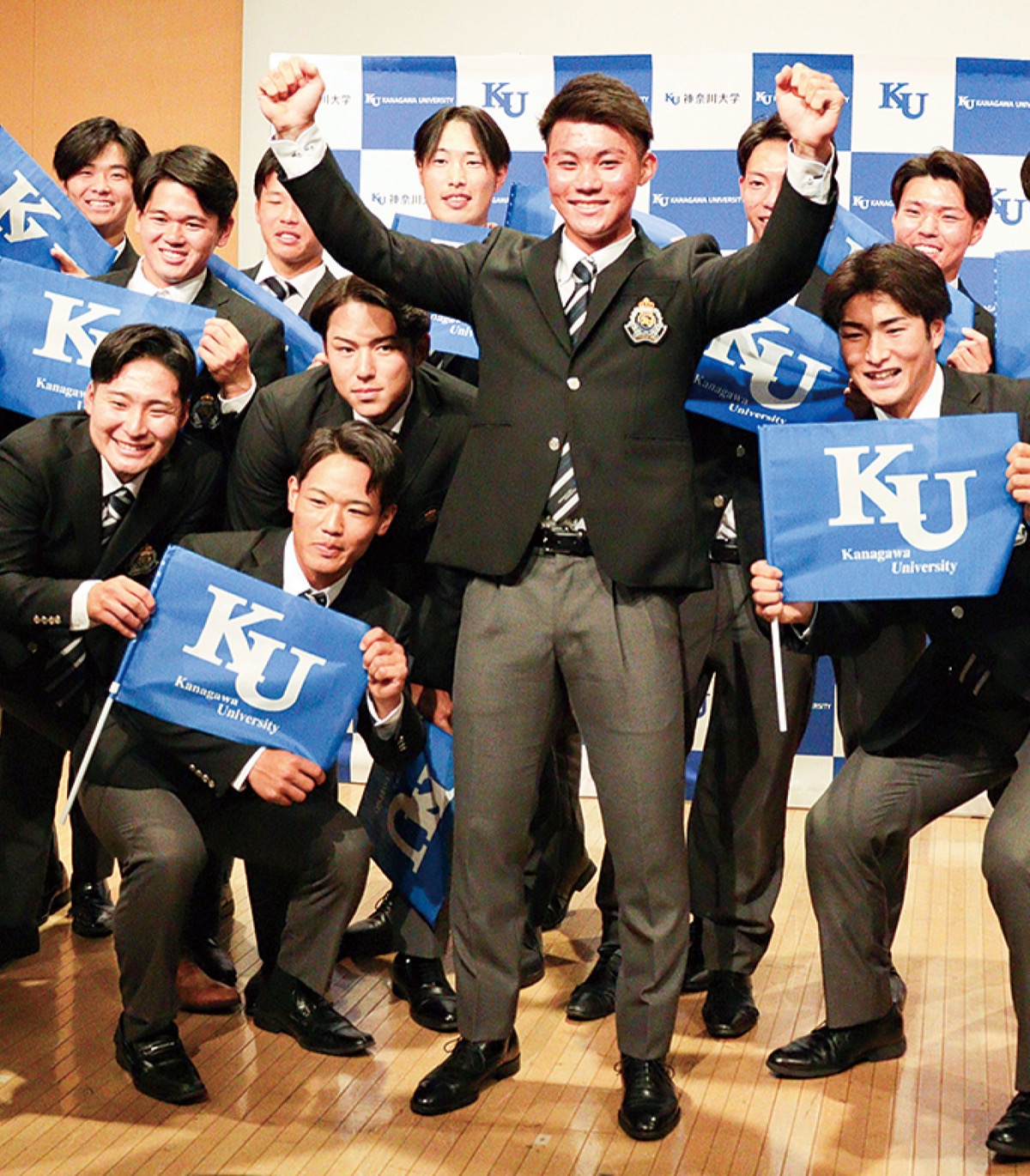 野球部員や監督とともに同大横浜キャンパス=神奈川区=で指名の瞬間を見届け、「予想よりも上位で驚いた。まだ実感は湧かないが嬉しい」と第一声を発した。外野も守れる遊撃手で、俊足が特徴。「目標は盗塁王。日本を代表する選手になりたい」と意気込む。大学4年間では打撃が成長したと振り返り、今秋の5季ぶりの神奈川大学野球連盟秋季1部リーグ戦優勝が一番の思い出と話した。