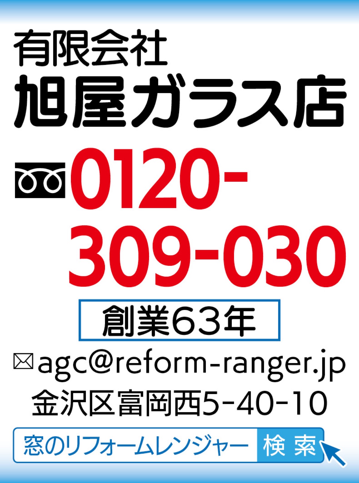 創業63年を超え、施工実績、アフターケアの手厚さを誇る(有)旭屋ガラス店では、高断熱と結露の防止に向けた窓断熱リフォームを推奨している。同店で扱う真空ガラスは、一般的な複層ガラスの約2倍の断熱性能をもつ。依頼者からは「手間のかかる案件にも真摯に取り組んでいただける」と評価の声が上がっている。まずは相談を。