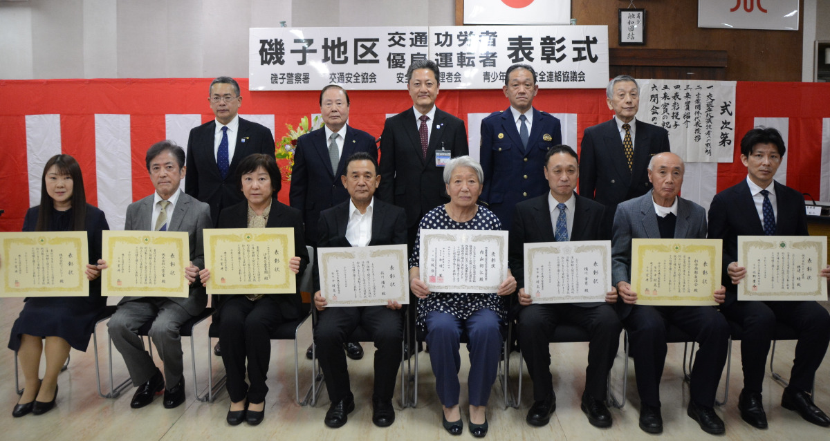 ▽神奈川県知事表彰 交通安全功労者=林昌邦▽県警察本部長表彰 交通安全協力者=依田広子▽県警察本部長・地域交通安全活動推進委員協議会連絡協議会会長連名表彰 交通安全功労者=内山初江▽磯子警察署長表彰 交通安全功労者=横川幸男、佐川増夫▽磯子警察署長・磯子交通安全協会会長連名表彰 交通安全功労団体=杉田南部自治会▽磯子交通安全協会会長表彰 優良安全功労団体=(有)エヌ・オー自動車、(株)八雲堂、(株)フジソー、(一財)神奈川県団地住宅福祉協会 汐見台愛育園▽磯子警察署長・磯子安全運転管理者会会長連名表彰=光洋工業(株)▽磯子安全運転管理者会会長表彰=(株)ネダテ建商 根建睦