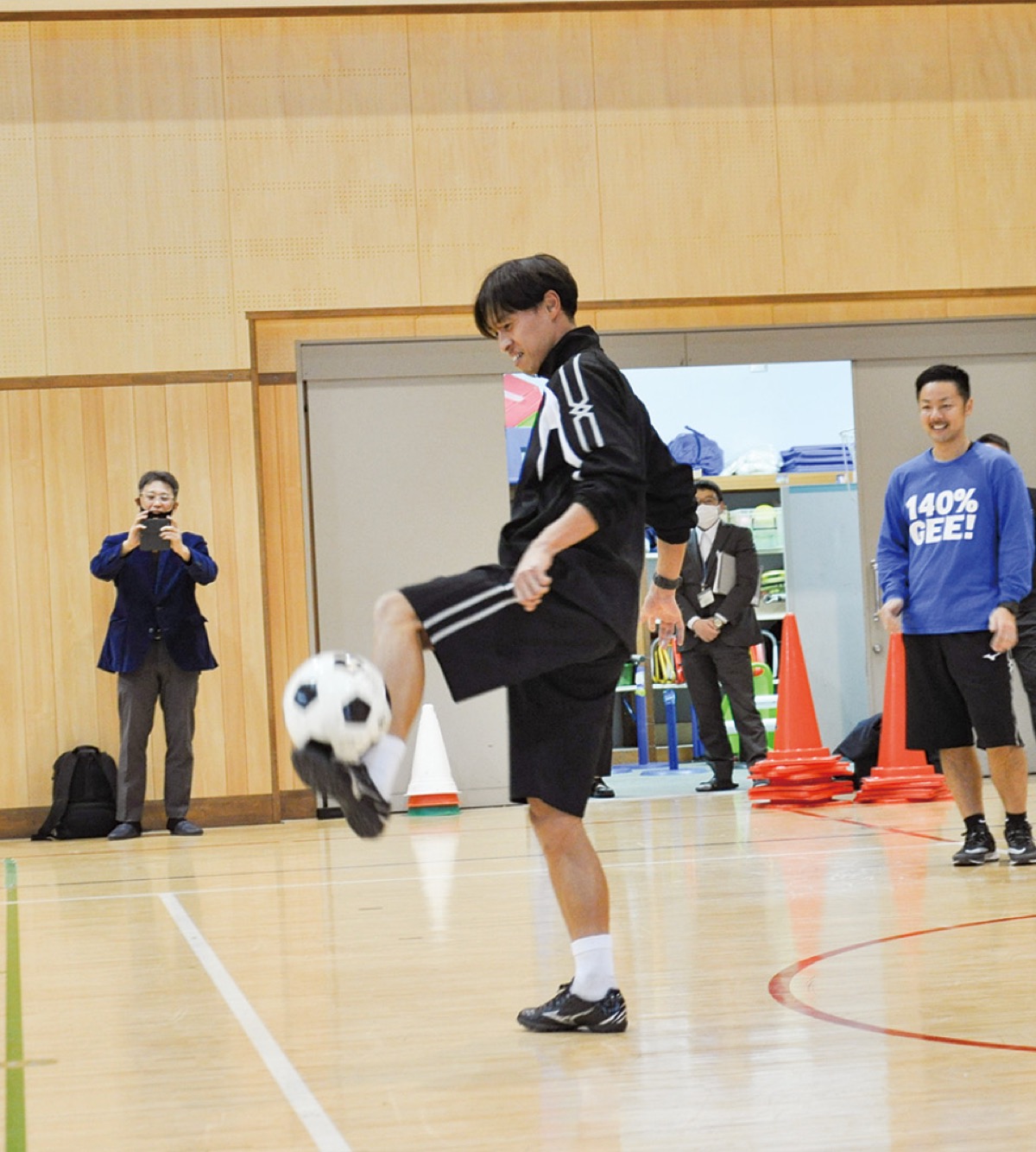 ジェイビーシー(株)は12月11日、県立金沢支援学校でプロサッカー選手を招き、生徒たちにサッカーを教えた。元アルゼンチン・ユース代表のセルヒオ・エスクデロさん、社会人サッカーチーム・アヴェントゥーラ川口の高瀬優孝選手、片倉誠也選手、元ビーチサッカー日本代表候補の吉良龍人選手の4人が来校した。