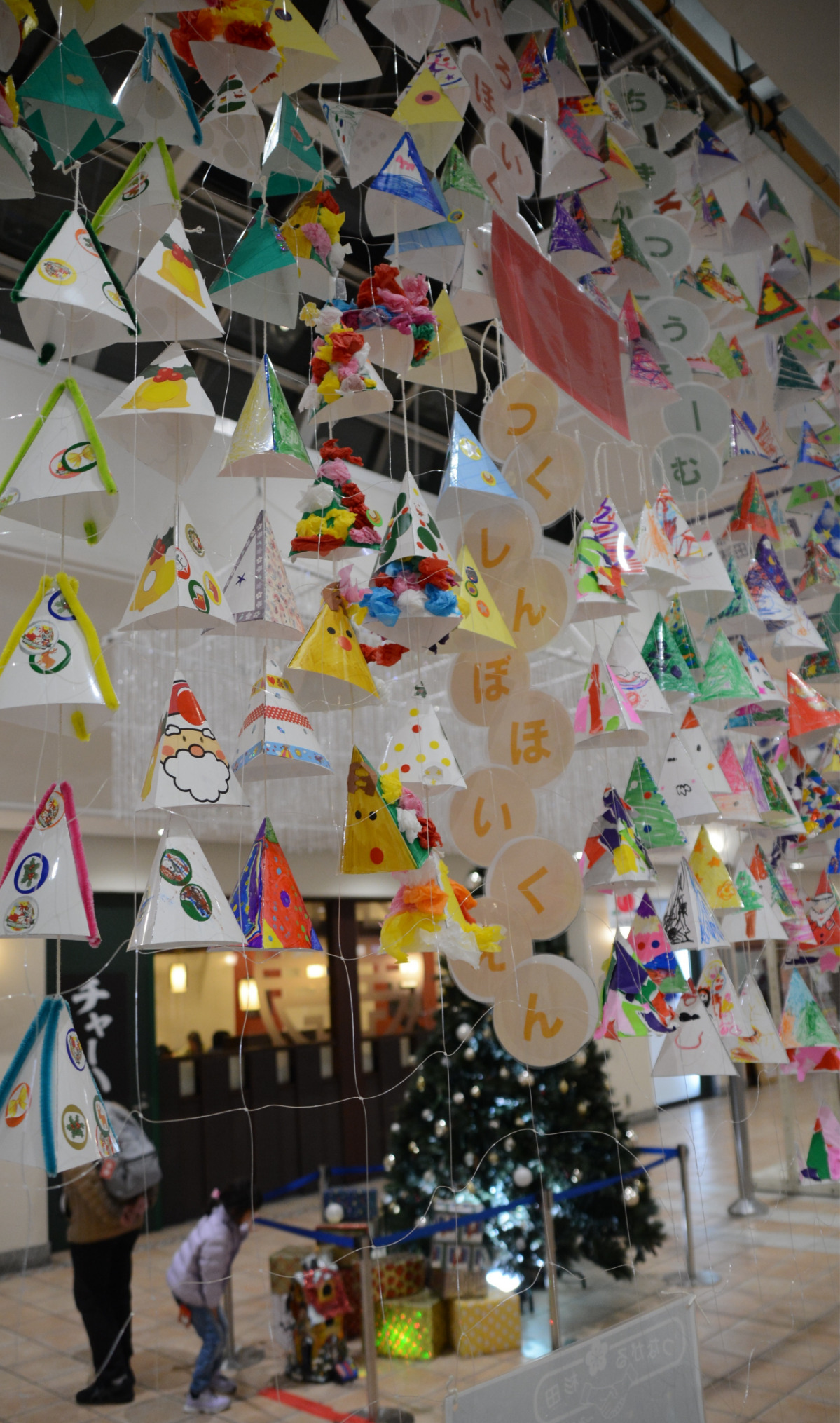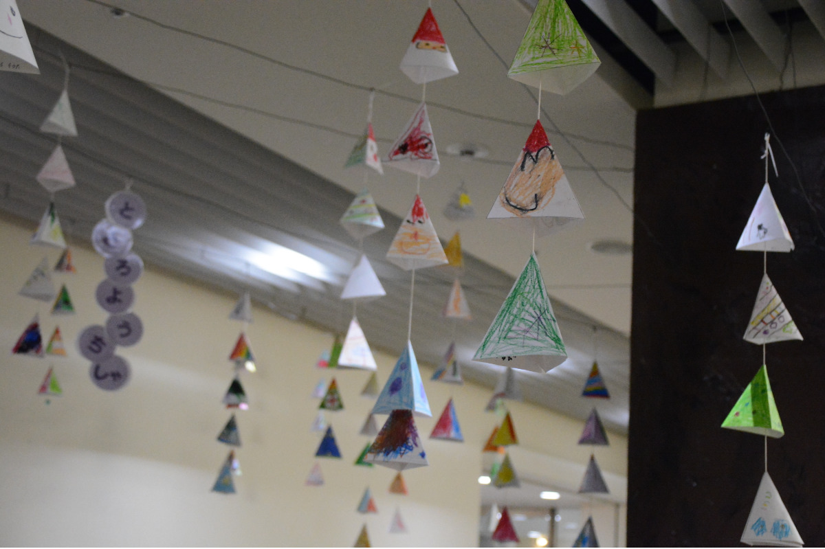 展示場所は企画の中心を担った4施設のほか、らびすた新杉田 ベイガレリア、磯子スポーツセンター、いぶき支援室の計7カ所。サンタクロースが描かれたものや、色鮮やに塗られたものなど三角錐状の手作りツリーがいくつも吊り下げられ、各所に飾られている。