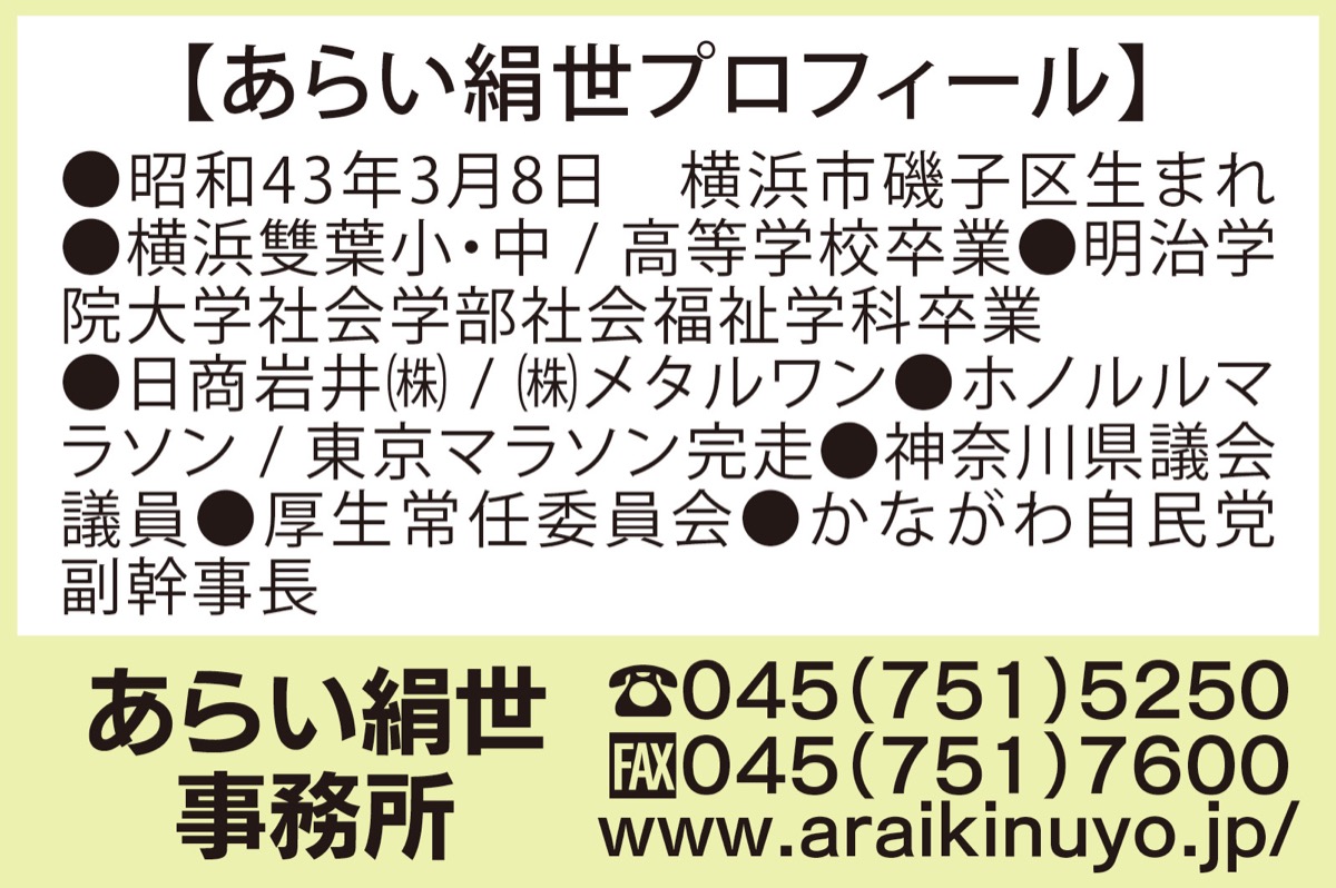 神奈川県議会議員 あらい絹世 県政報告