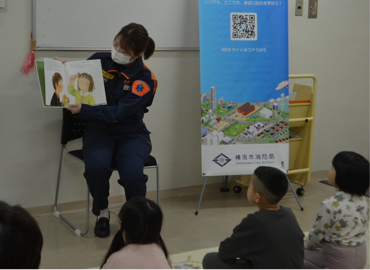 読み聞かせをした同署の菊田裕里さんは「消防車が作られる過程など、自分も絵本を読んで勉強になった。子どもたちが真剣に聞いてくれていて嬉しかった」と話した。今回読まれた2冊は、金沢図書館で貸し出されている。