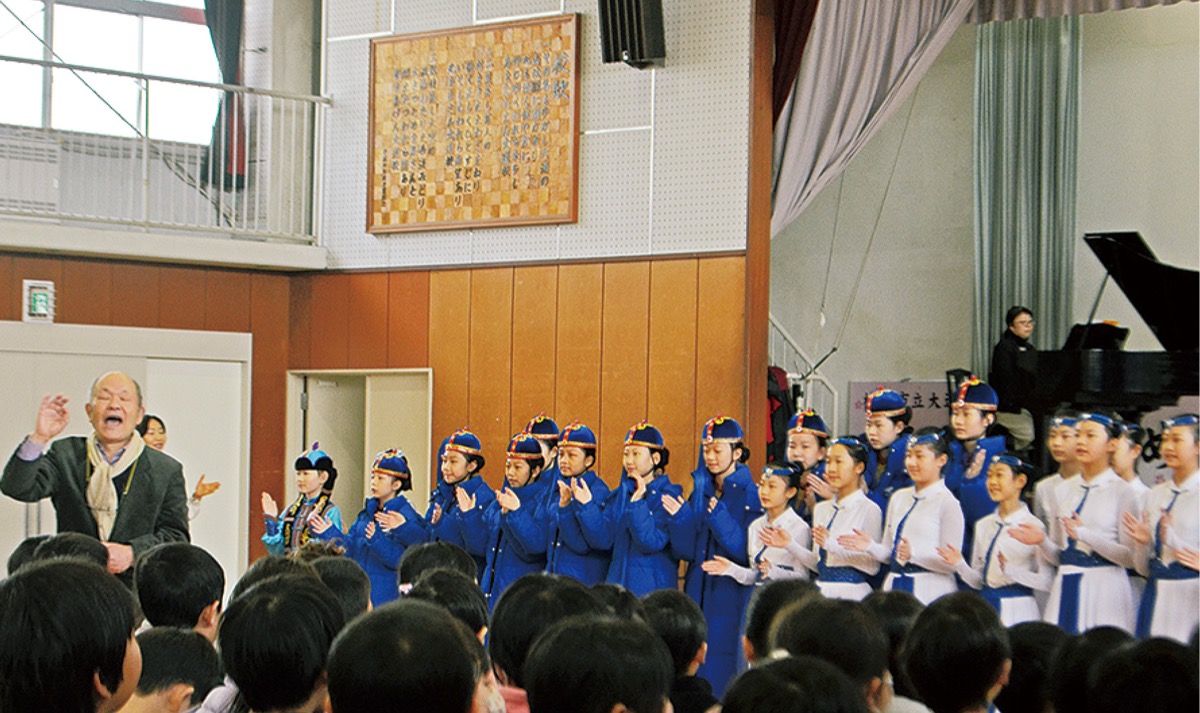 金沢区のカナリヤ幼稚園と大道小学校に2月10日と12日に、中国・内モンゴル自治区の少女芸術団「内モンゴル小鴻燕(しょうこうえん)芸術団」が訪れ、交流会が行われた。小学4〜6年生の同芸術団の子どもたち32人が来日し、音楽による交流や教室での触れ合い、給食交流などが行われた。