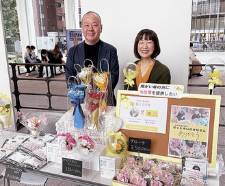 磯子区内の企業と障害者福祉施設が連携して製作した花のブローチが、3月に開催された「2025国際女性デー in横浜」で初めて販売された。この取り組みはフラワーギフトを販売する磯子区洋光台の(株)ココカラと上中里町の生活介護事業所ほっとゆいによるもの。同社の三輪智士代表取締役が「地域で役に立てることはないか」と同所へブローチの製作を依頼。同イベントでの出店を機に市会議員のパーティーで登壇者が着用したほか、地域マルシェでの販売が決まるなど広がりを見せている。