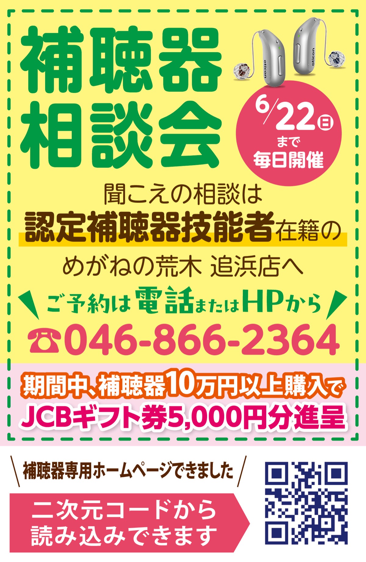 めがねの荒木 追浜店では、「補聴器相談会」を6月22日(日)まで実施しており、様々な機種が体験できる。「購入を検討している」「生活に合わせて買い換えたい」「不具合が気になる」といった悩みや相談に応じる。