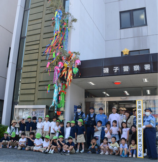 磯子警察署と磯子交通安全協会は7月1日、同署で交通安全祈願七夕まつりを開催した。区内の八幡橋幼稚園と日枝幼児園から園児約30人と教諭らが集まり、願いを込めた短冊などを竹に飾り付けた。