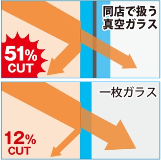 創業64年を超え、施工実績、アフターケアの手厚さを誇る(有)旭屋ガラス店では、夏の強い日差しによる暑さ対策に向けた窓リフォームを推奨している。同店で扱う真空ガラスは、一枚ガラスの約4倍の遮熱性能をもつ。依頼者からは「手間のかかる案件にも真摯に取り組んでいただける」と評価の声が上がっている。まずは相談を。