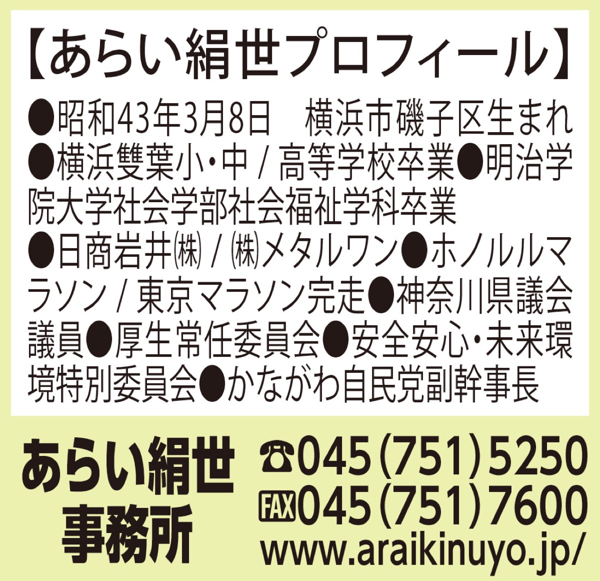 神奈川県議会議員 あらい絹世