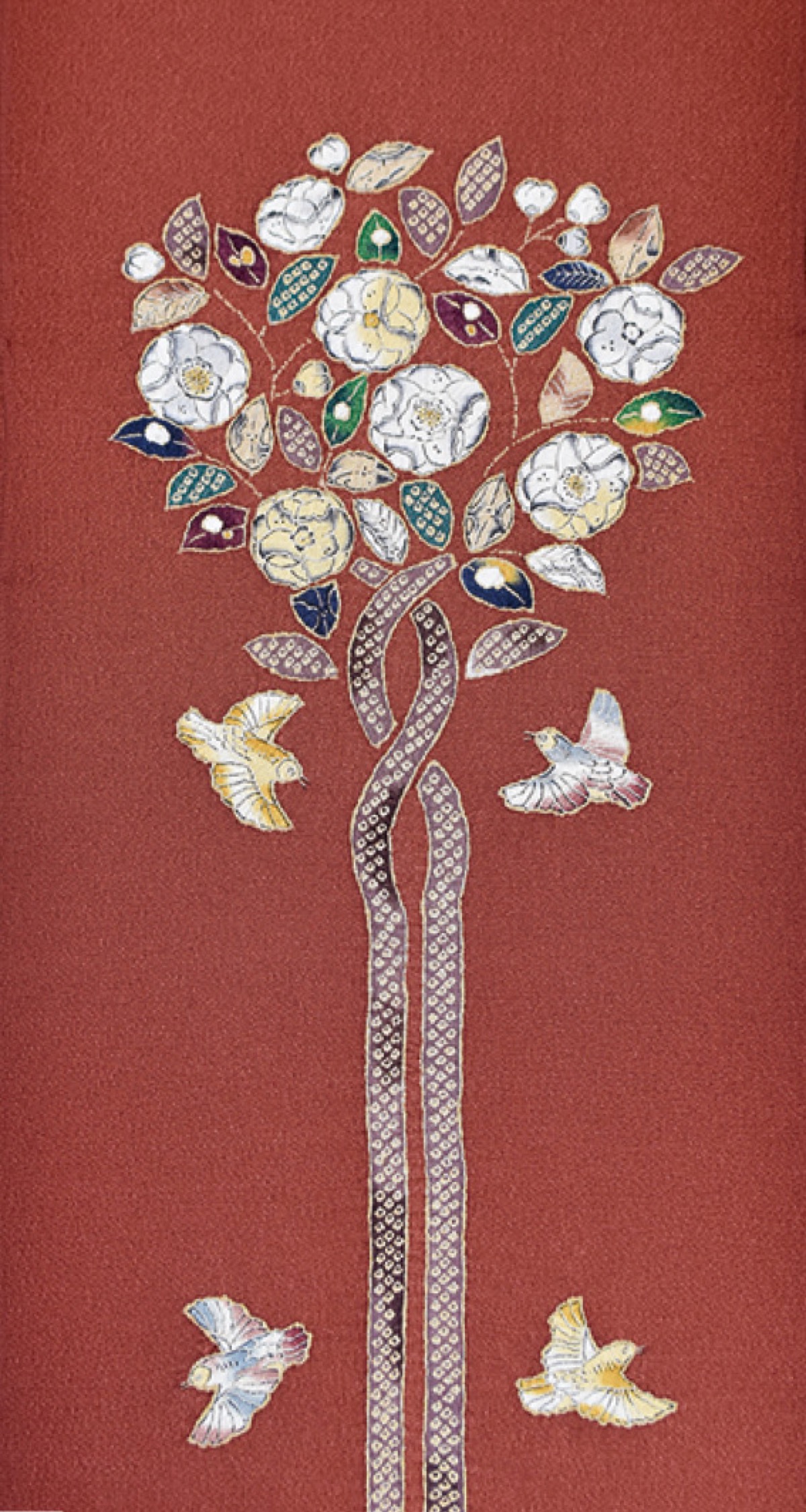 秋はおしゃれを着物で楽しみたい季節。「着物1枚に帯3本」といわれるように、帯によって雰囲気が変わるため「秋は帯でおしゃれを楽しんでほしい」と店主の島倉さん。帯には主に礼装用の袋帯、名古屋帯、袋名古屋帯などがあり、織・染、柄、素材など多種多様に及ぶ。訪れる場所にふさわしい装いをするのがマナーとされるが「帯合わせは地域によっても異なり難しく考えずに楽しんでほしい」と話す。