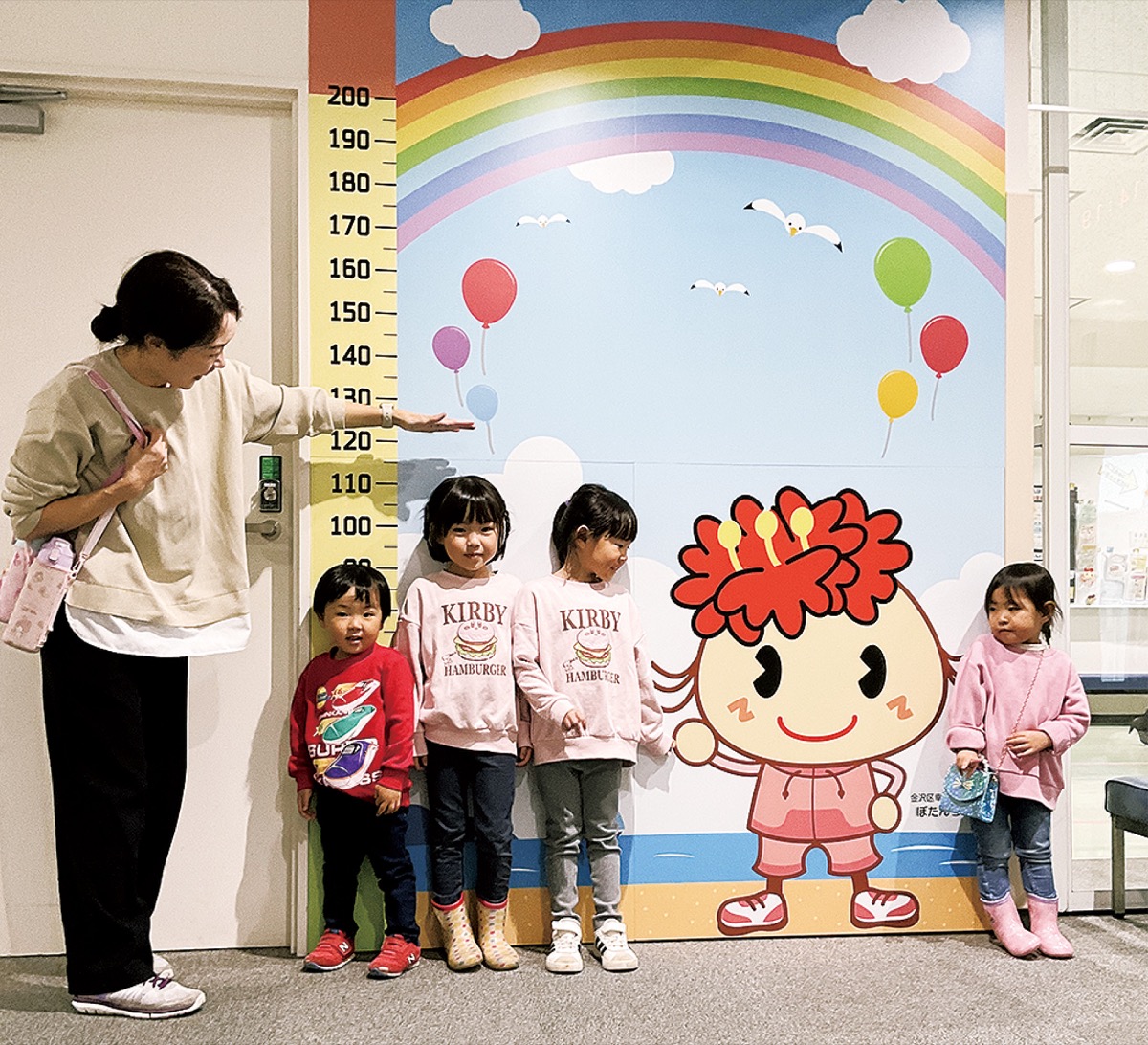 金沢区役所5階の健診フロアにある健康チェックエリアがこのほど、リニューアルされた。これまでも体組成計、血圧計が設置されていたが、働きながら子育てをしている人たちにも自分自身の健康を振り返るきっかけになればとリニューアルを計画。乳幼児健診で5階を訪れる人が多いことから、子どもにも親しみやすいよう区の広報キャラクター「ぼたんちゃん」と一緒に身長を計れるパネルを設置した。
