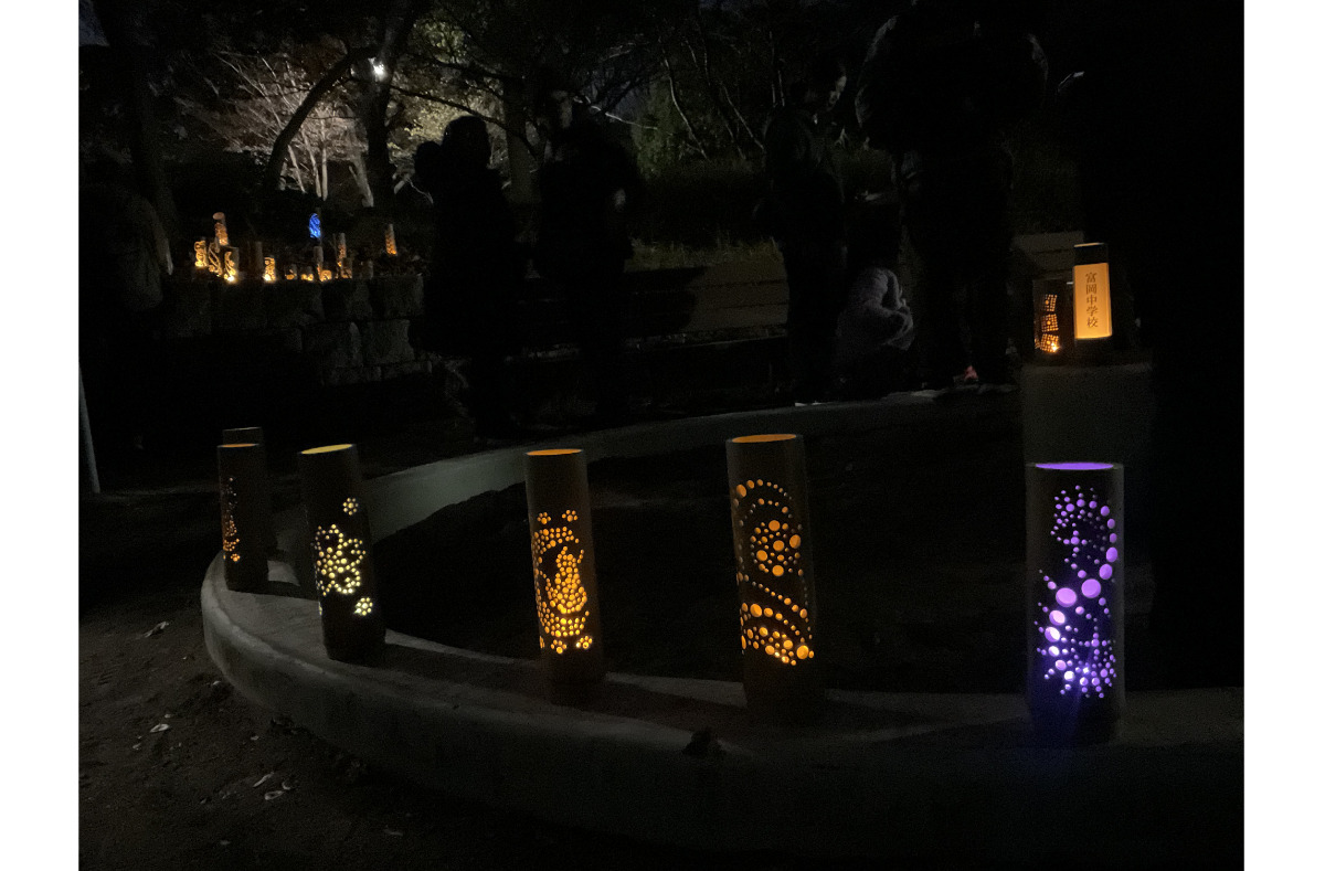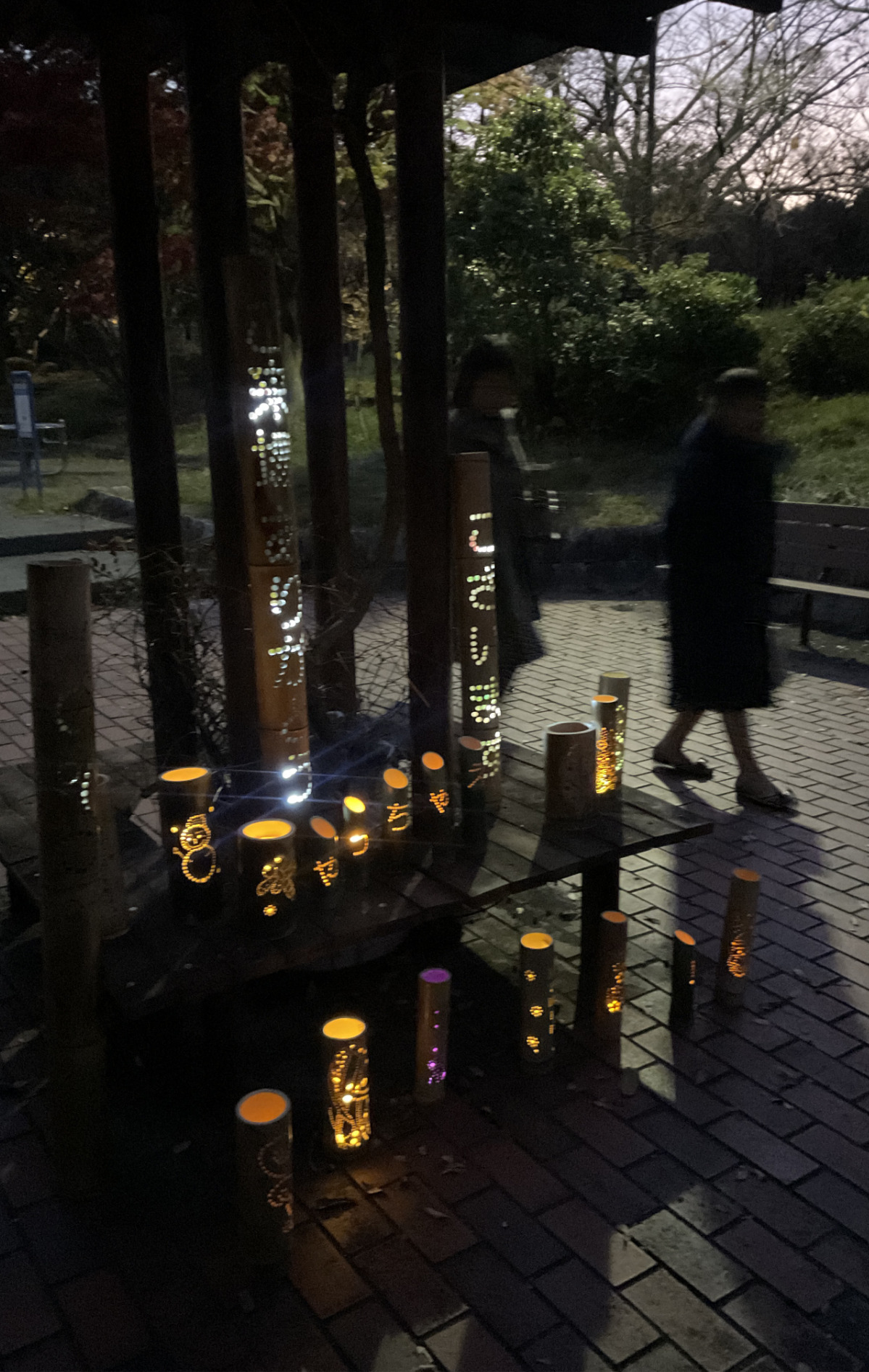 能見台地区で初めてのイベント「やっちゃえ!竹灯篭in能見台」が11月29日、能見台中央公園で行われた。夕暮れとともに竹灯篭が点灯すると、一帯は優しい光に包まれた。
