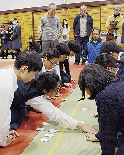 西金沢学園の頭島壮汰さん(中学2年)は「他校の生徒と対戦できる貴重な機会。一首一首の句が持つ意味や物語に興味を持つきっかけになる」と話した。