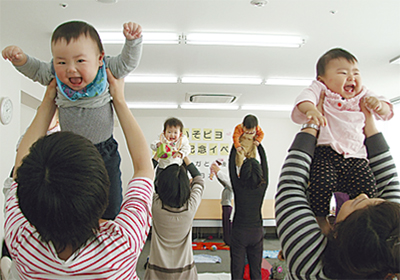 教室でははじめに、講師の斉藤希世子さんが、「お母さんの手には、不思議な癒しの力があります。その手でお子さんをなでてあげてください」と説明した。その後、指導に合わせ、母親たちは擦り合わせた両手で膝に座らせた子どもの肩甲骨をマッサージしたり、脇の下を持って軽く押した後、少し上に持ち上げる動きなどに挑戦。マッサージされた子どもたちは、嬉しそうな笑顔を見せていた。