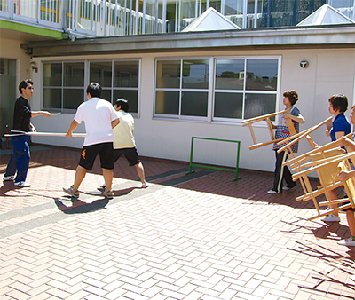 園内には怒号が飛び交い、その様子はまるで実戦さながら。教職員たちも警察官たちも真剣な表情で訓練に臨んでいた。