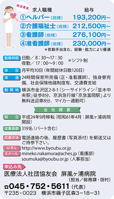 ホーム > 磯子区版 > ピックアップ(PR) > 新病院開院のため職員募集