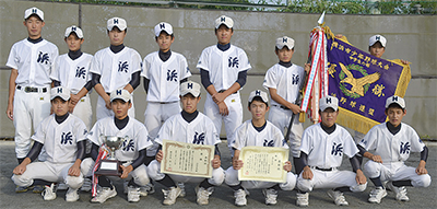 試合は3回、岡本想司郎主将のランニングホームランで浜中が先制。2対1と1点リードで迎えた最終7回には、集中打で一挙4点をあげると、その裏の反撃を1点に抑え栄冠を手にした。