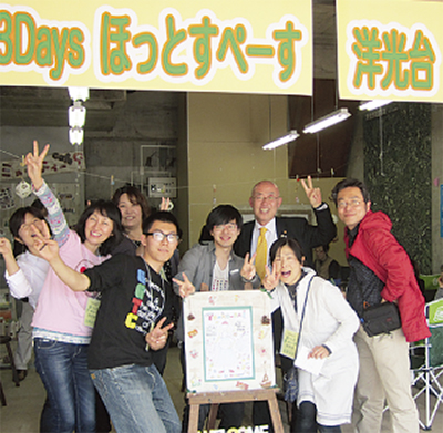これは多世代近居のまちづくりをすすめる洋光台団地再生の実験事業です。当日は、お年寄りから育児真っ最中のママまで多くの来場がありました。UR都市機構の協力で実現しましたが、来場者には大変好評でこの事業の継続を望む声が多数寄せられました。